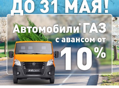 До 31 мая 2023 года приобретайте автомобили ГАЗ 2023 года выпуска с АВАНСОМ ОТ 10%!
