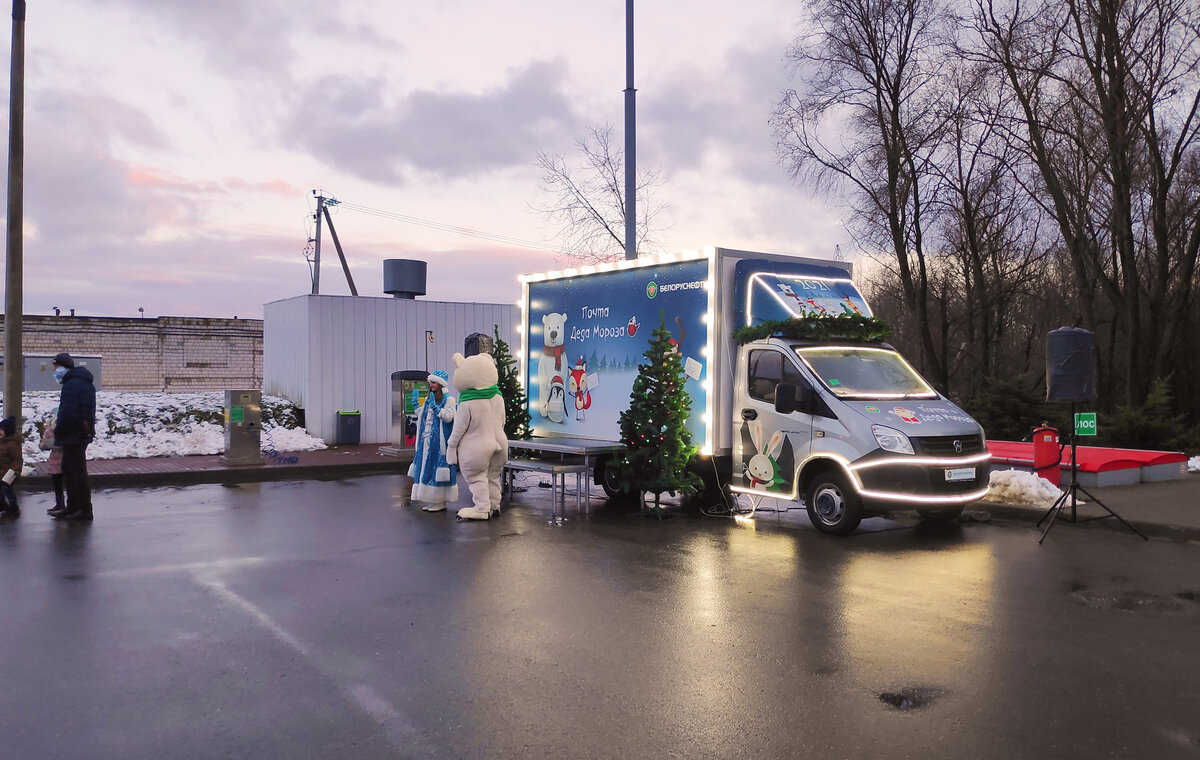 Заехав с ребенком на заправку, можно было не только бесплатно получить праздничный набор для письма Дедушке Морозу, но и, заполнив его, здесь же отправить в Беловежскую пущу. Доставку в срок и по адресу гарантировал почтовый АЗС-экспресс созданный на базе ГАЗель NEXT.