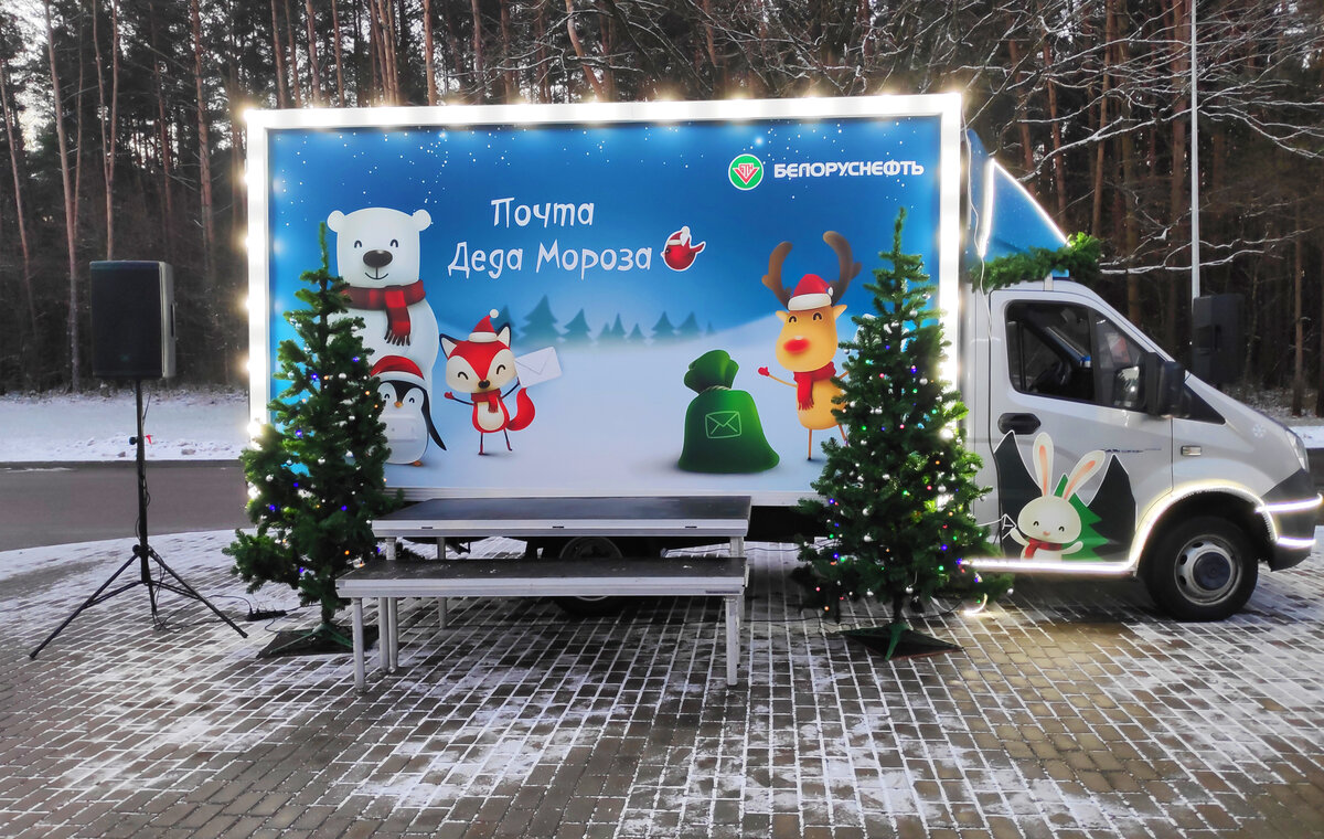 Новогодний почтовый грузовичок Деда Мороза проехал по всей стране и посетил автозаправки в каждой области, чтобы собрать письма и 29 декабря доставить их Деду Морозу в Беловежскую пущу.